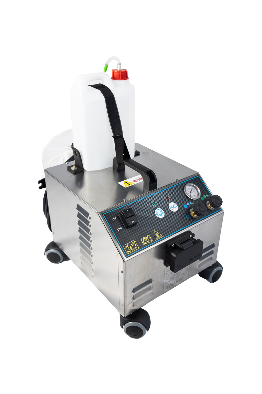 The Chief Steamer MINI 125 features a chemical injection system allowing users to inject their preferred cleaning solution directly into the steam hose, offering flexibility to manage the steam’s wetness as per the cleaning needs, particularly effective against tough grease and grime. Unlike other models, it doesn’t just run water through the boiler, ensuring sustained pressure and steam volume for efficient car washes.
